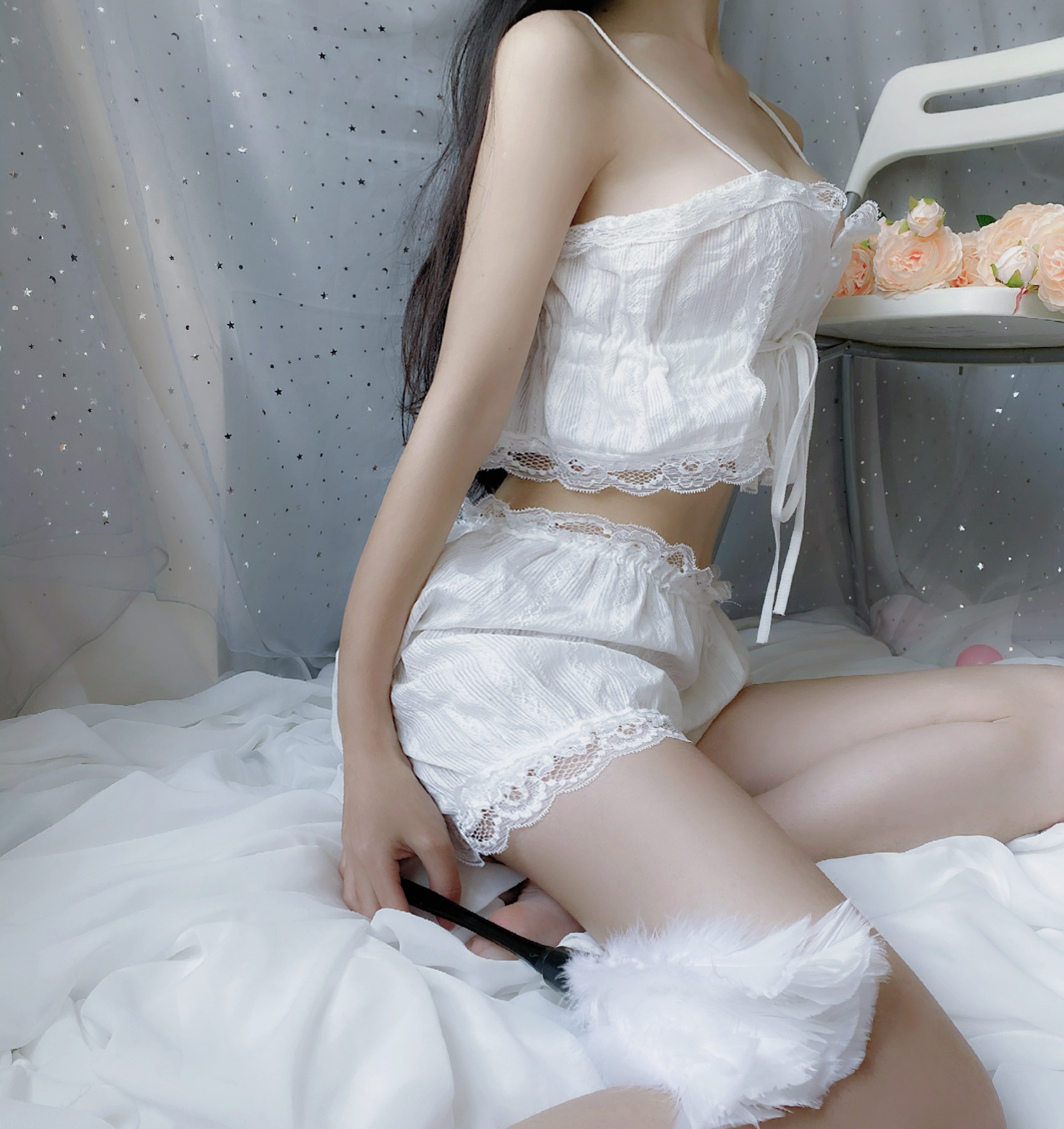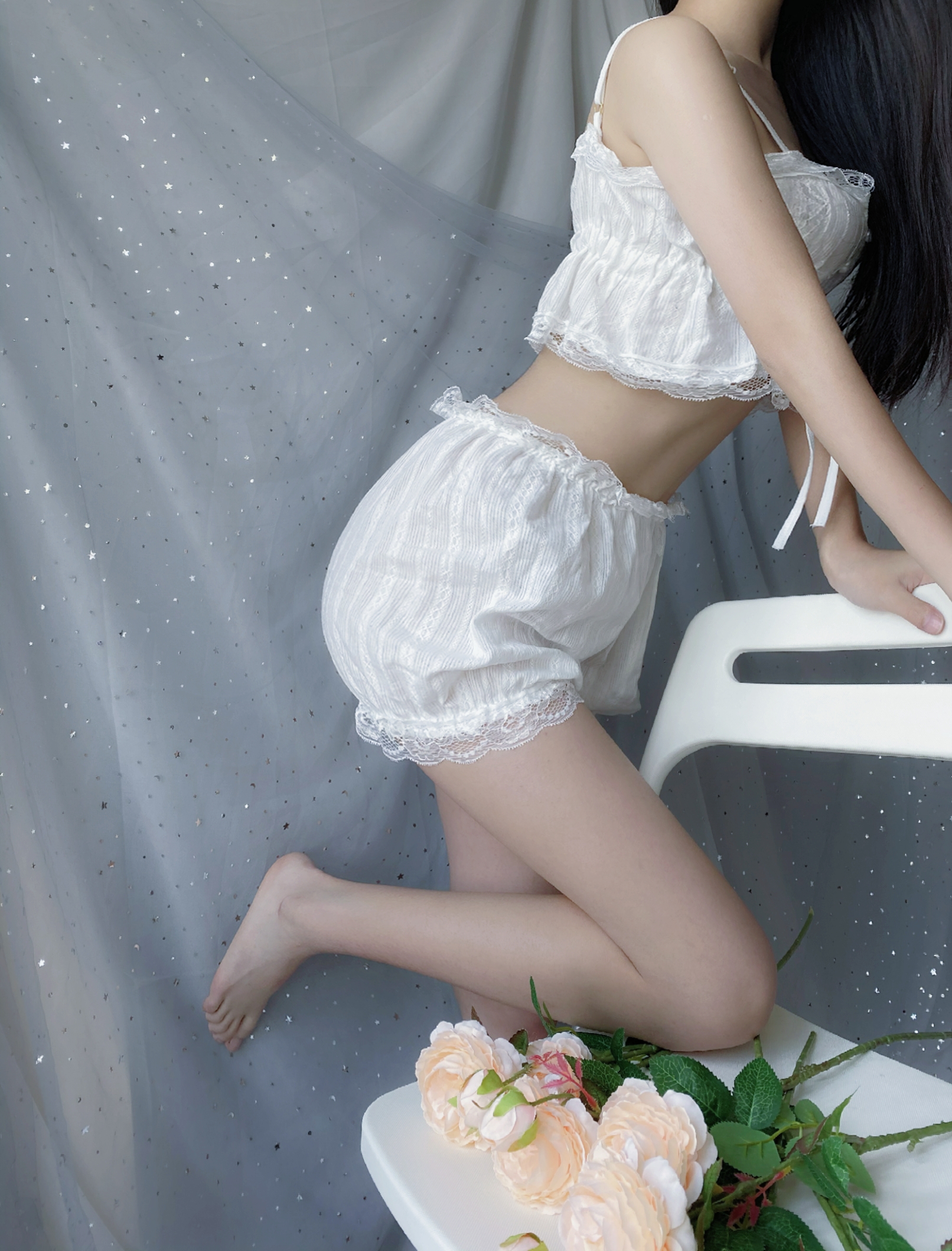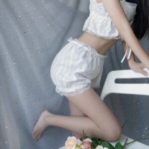 Be the first to review “Private Label White Womens Sexy Button Up Drawstring Crop Top Ruffled Lace Womens Sleepwear 2 Piece Set” Cancel reply